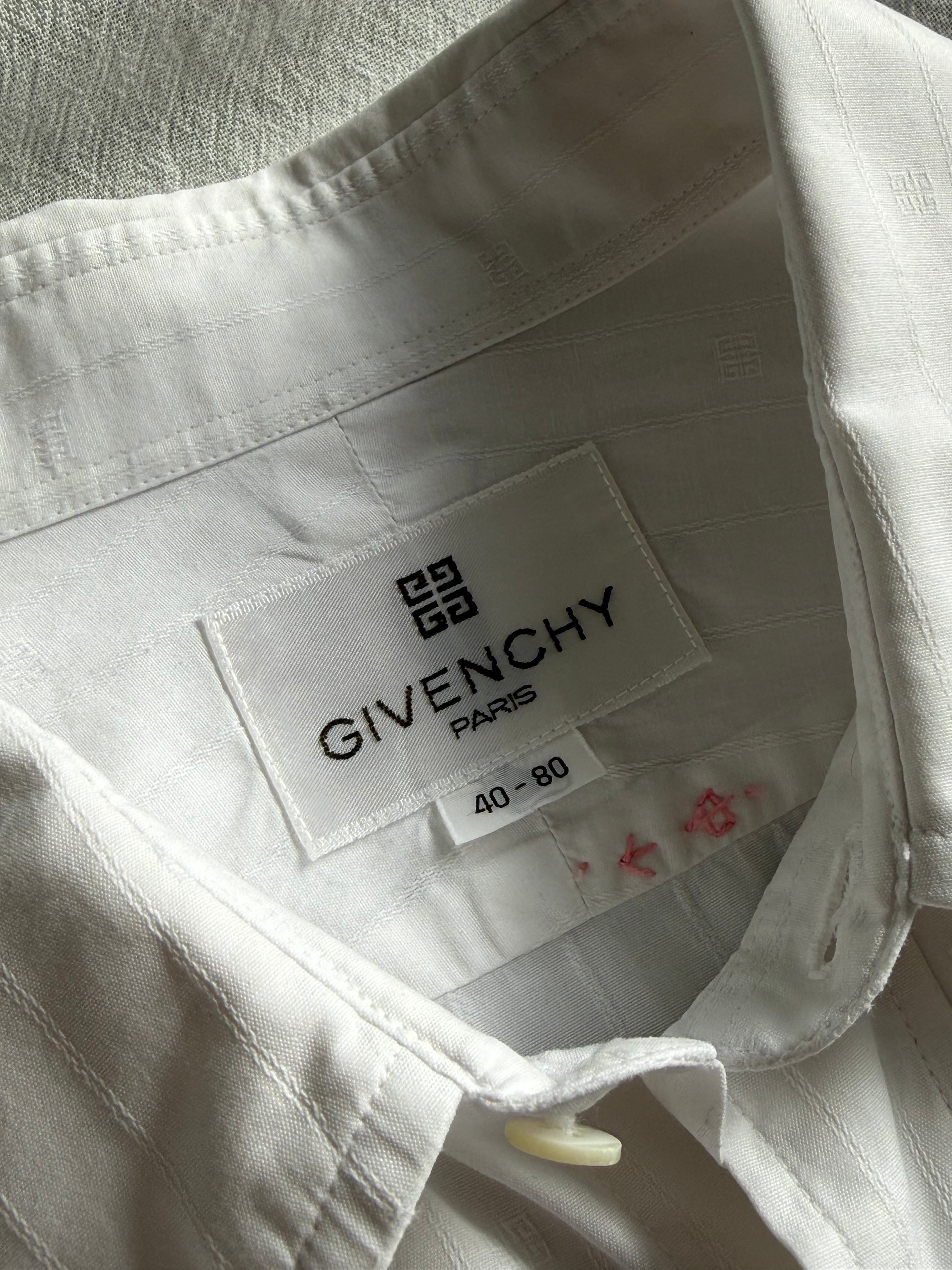 ただの白じゃあつまらないと思ってる方へ。よく見るとジバンシィのあのロゴがストライプ状に入ってます。シワになっても良い素材感。春夏に絶対重宝するアイテム。
