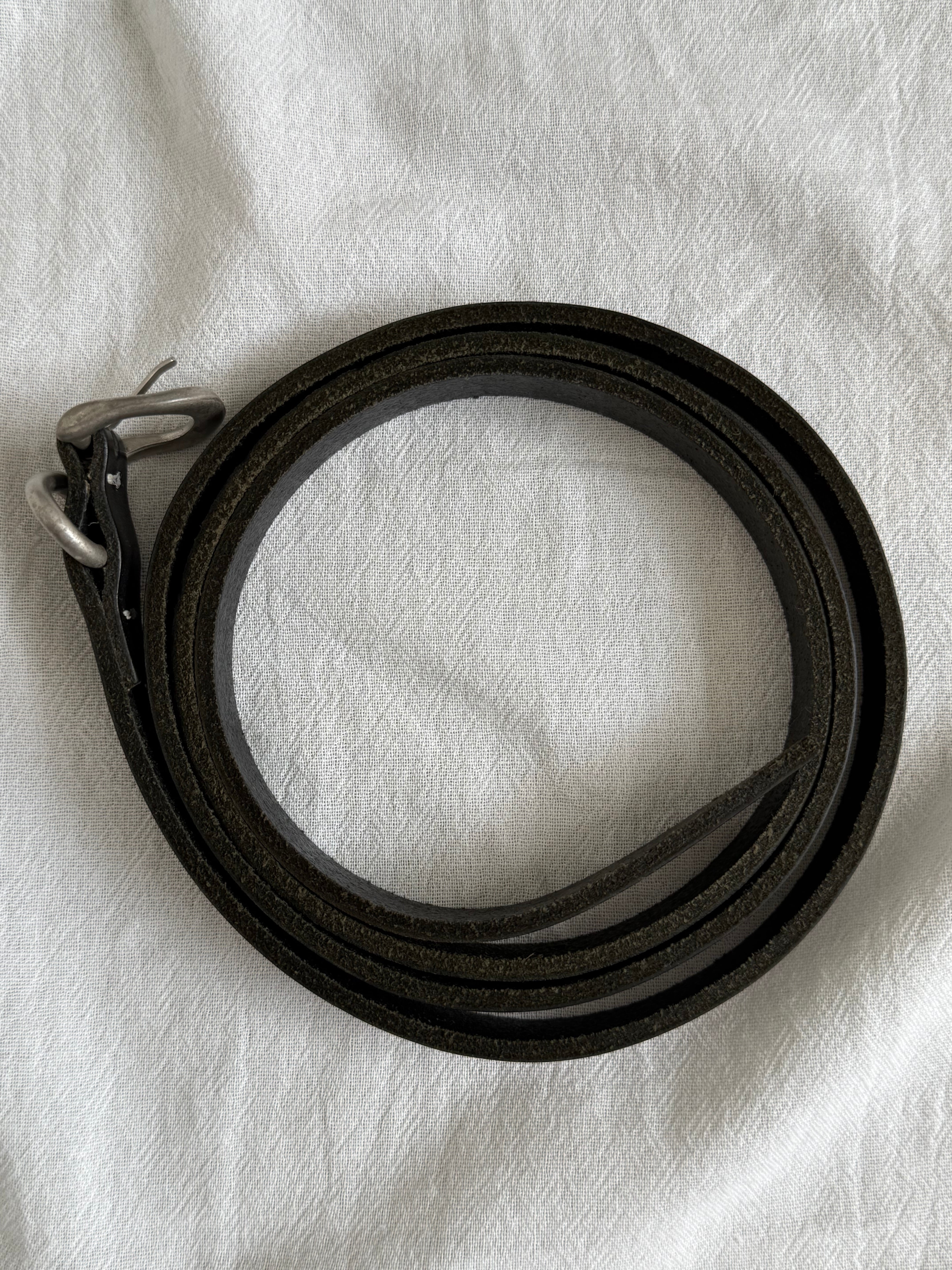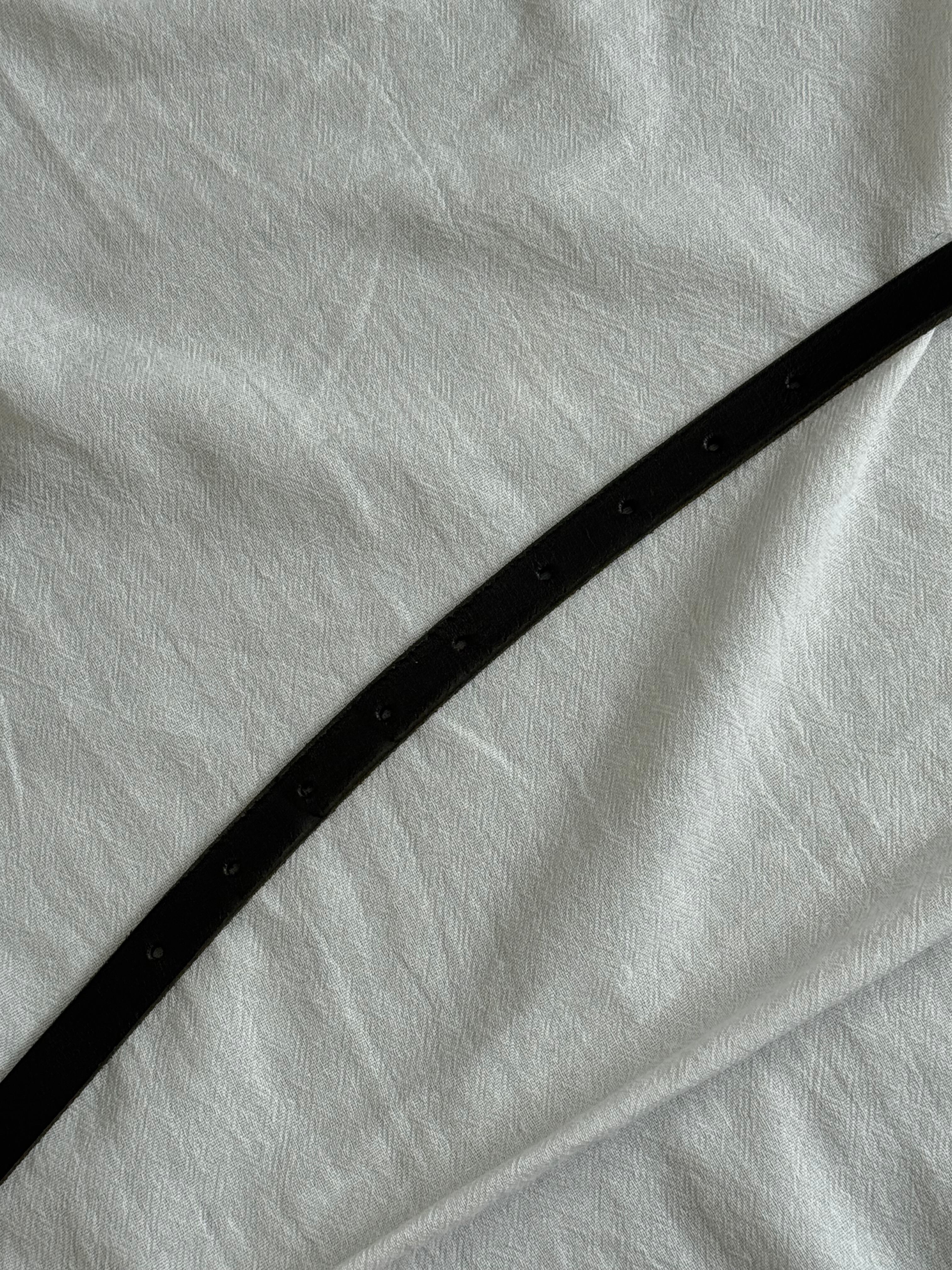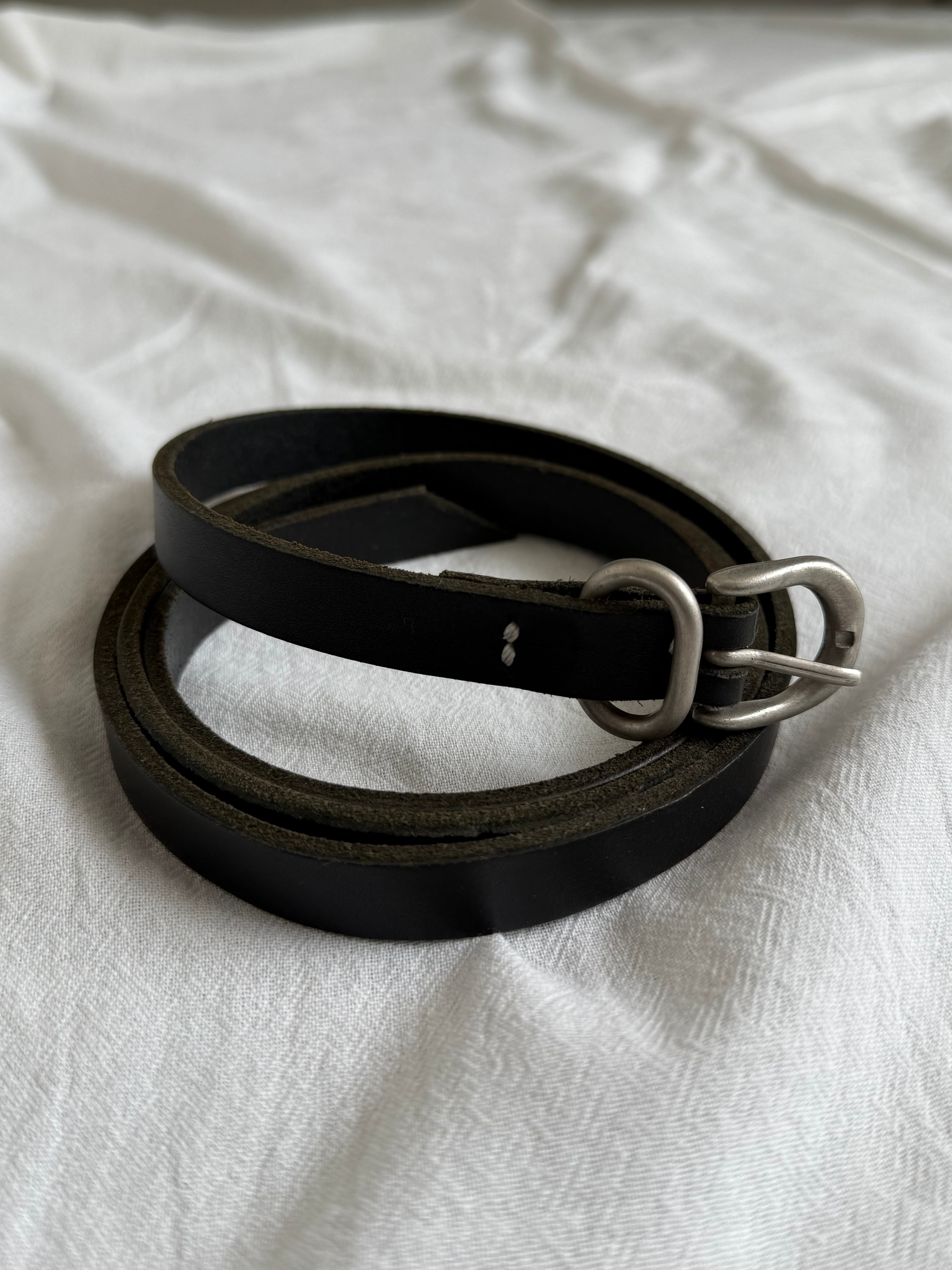 ナローの細いベルト。長めのベルトなので折りたたんで見せる感じでも。